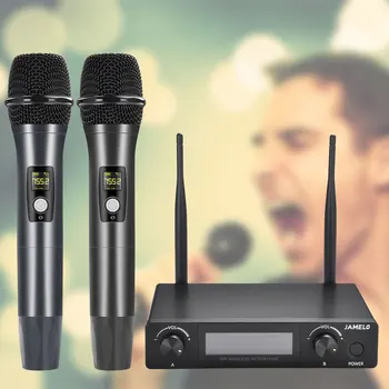 Wireless Microphone,Metal Dual Professional UHF Cordless Dynamic Mic Handheld Microphone System for Home Karaoke, Meeting, Party, Church, DJ, Wedding, Home KTV Set, 200ft
