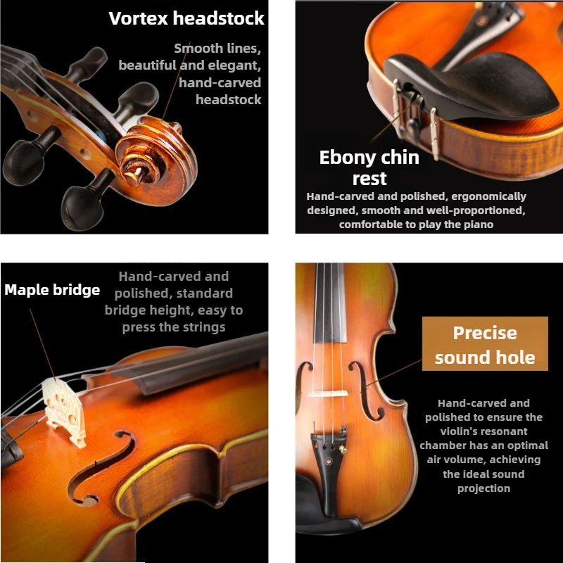 | Product Details Product Name: Matte Patterned Violin Panel material: White pine The material of the drawn string board: ebony Back and side board material: Maple wood Applicable to: Beginners Violin sizes: 4/4, 3/4, 1/2, 1/4 Packaging size :80x30x15cm The gross weight of the product is approximately 2500g Packaging: Violin case + cardboard box Packaging list: Violin *1, bow *1, violin case *1 Note: Lighting and different displays may cause the color of the items in the picture to be slightly different from the actual ones. The allowable measurement error is +/-1-3cm. |