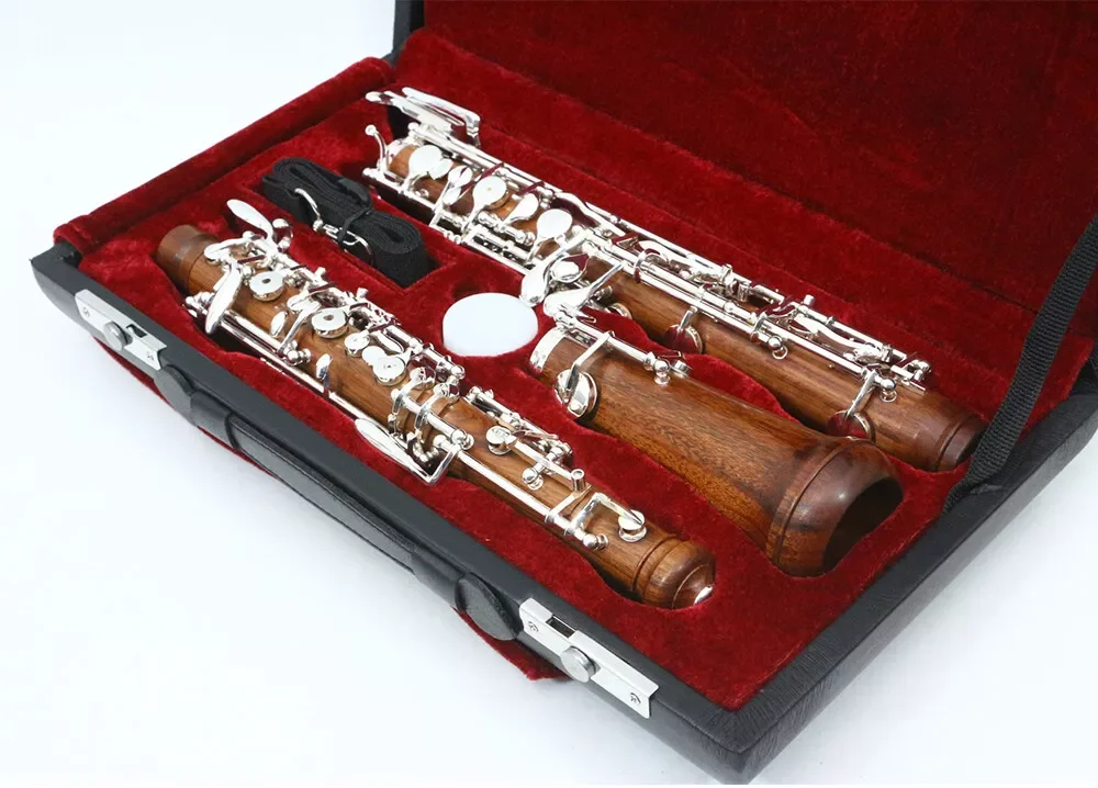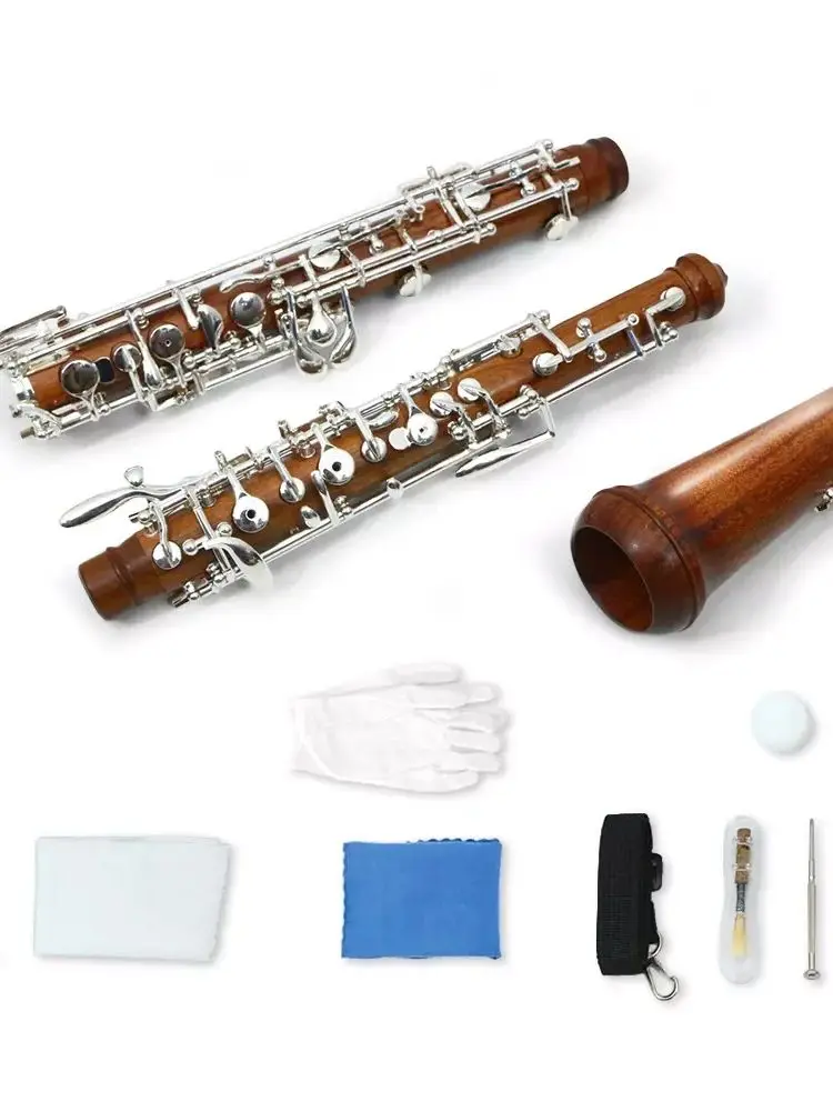 Free reeds, cork grease, cleaning cloth and a pair of white gloves.