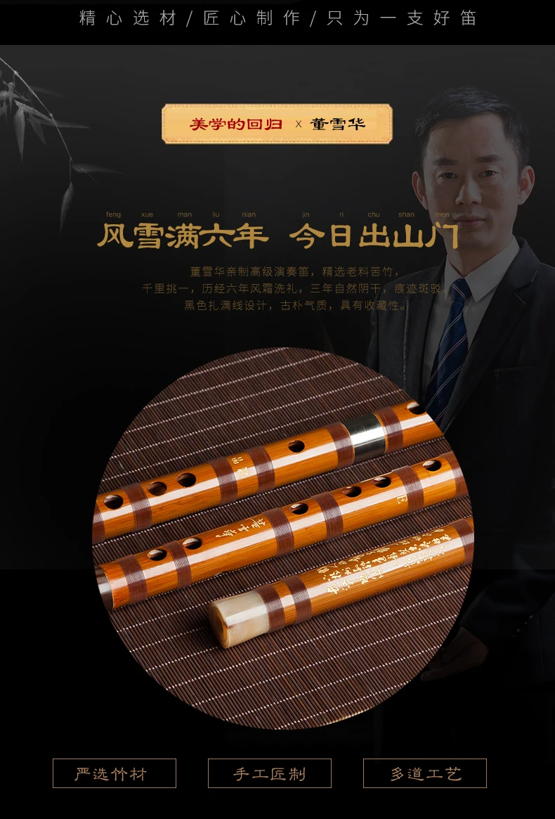 Dongxuehua Bamboo Flute is the best bamboo flute in China and the most popular bamboo flute. The craftsmanship and product quality are the best. More than 95% of the performers are using Dong Xuehua Bamboo Flute.