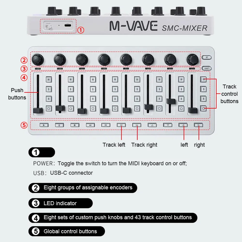 4.Unmatched Control & Flexibility: Featuring 43 assignable control keys and eight rotary knobs, the usb controller mixer offers unparalleled control. Compatible with most electronic instruments, it’s perfect for professionals and budding producers alike.
