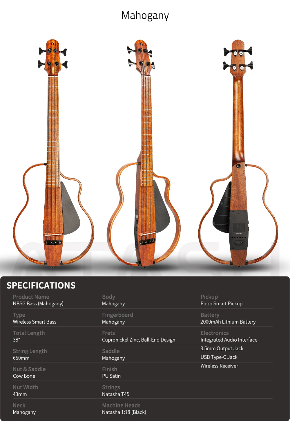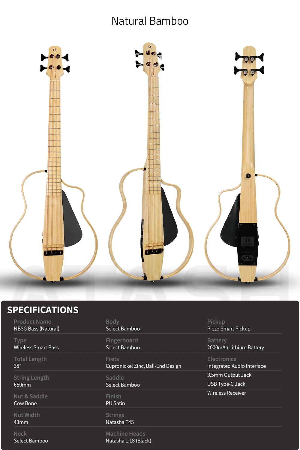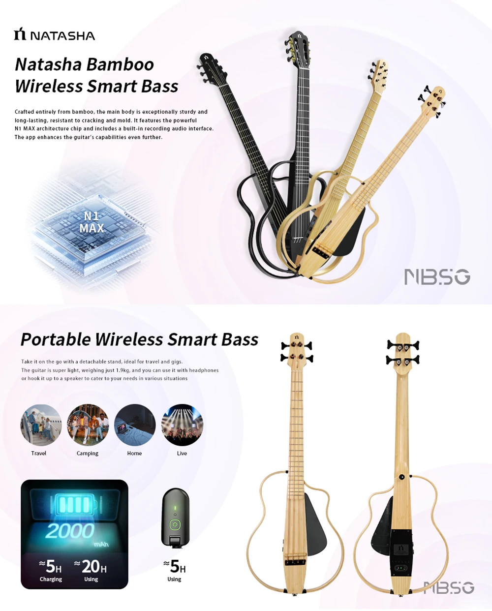 Natasha NBSG Bass smart wireless portable compact electric acoustic bass guitar