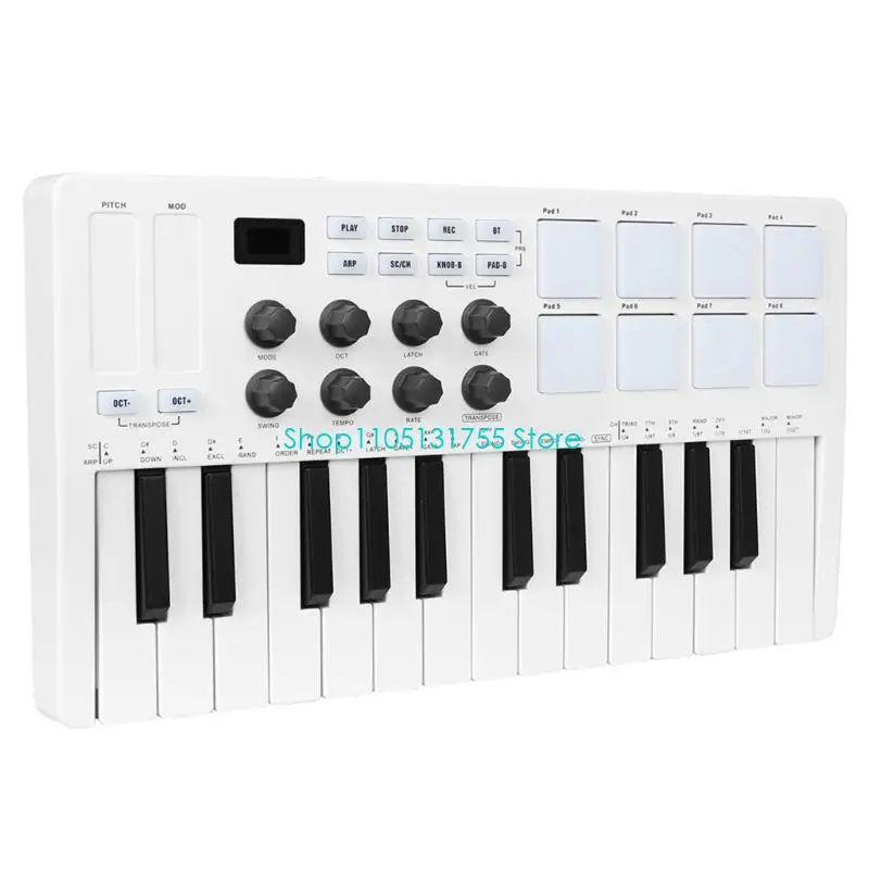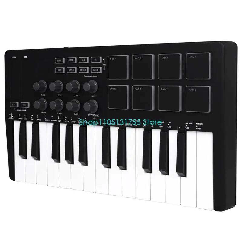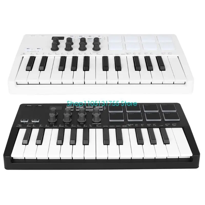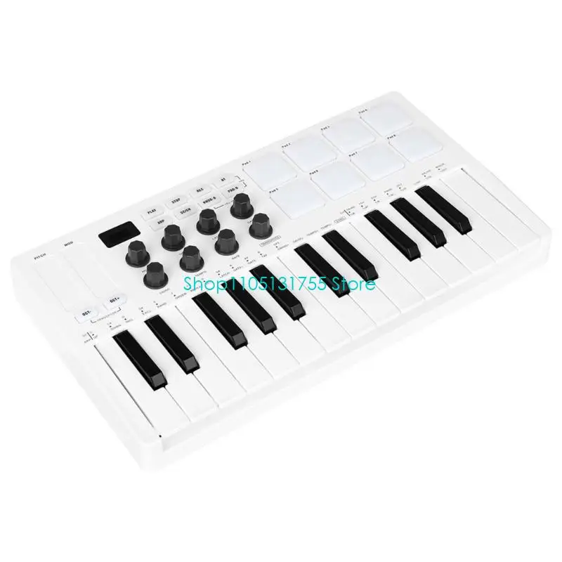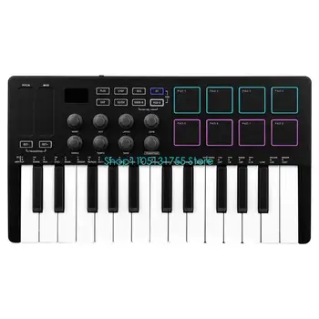Compact 25 controller with RGB backlit pads delivers portability for music creators, featuring responsive sensitive pads and seamless compatibility for plug and play functionality.