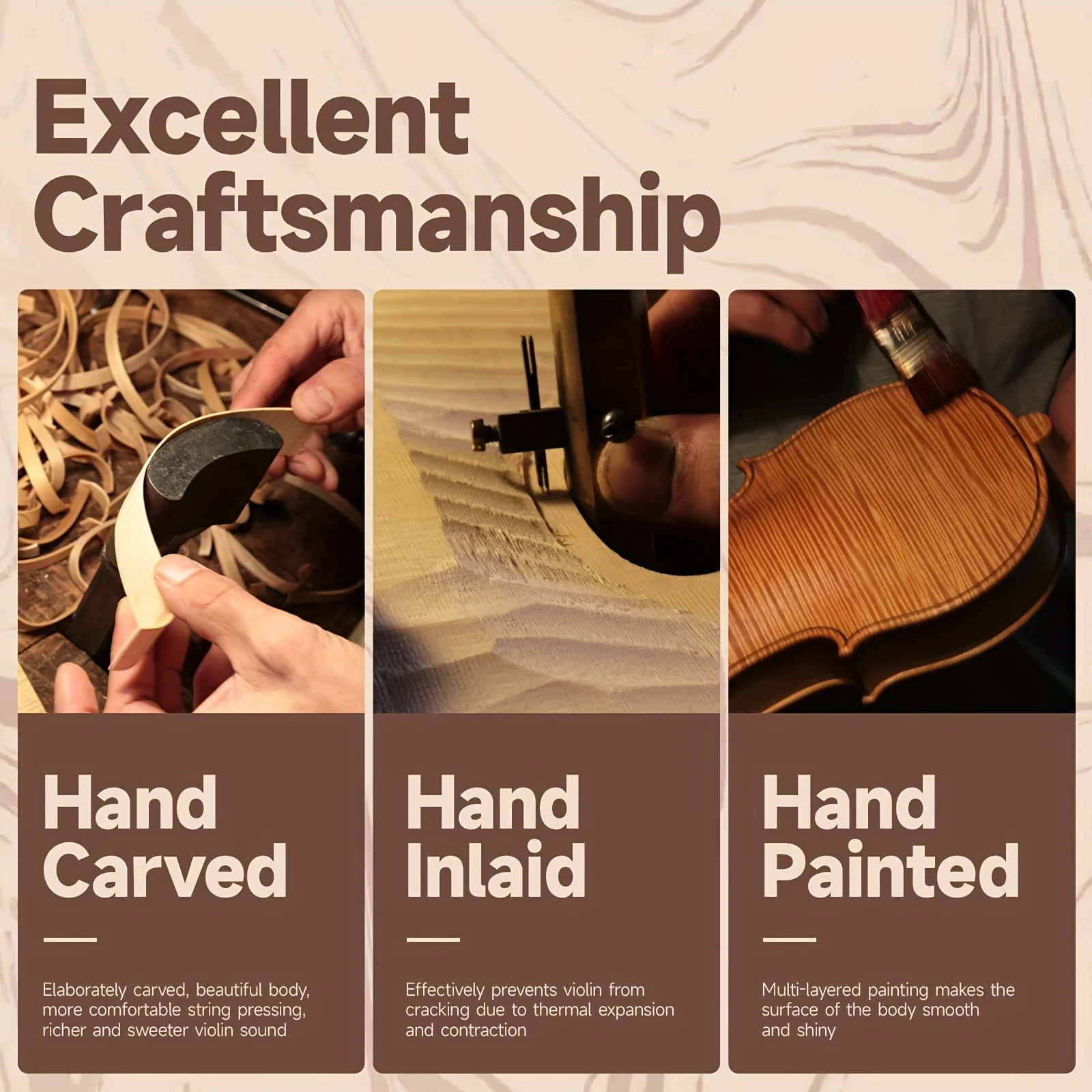 | Product Details Product Name: Handmade Solid Wood Tiger-patterned Violin Panel material: Spruce wood Wire drawing sheet material: carbon fiber Back and side board material: Maple wood Applicable to: Beginners Violin size: 4/4 Packaging size :80x30x15cm The gross weight of the product is approximately 2600g Packaging: Violin case + cardboard box Packaging list: Violin *1, bow *1, tuner *1, muffler *1, piano polishing cloth *1, shoulder rest *1, violin instruction manual *1, violin case *1 Note: Lighting and different displays may cause the color of the items in the picture to be slightly different from the actual ones. The allowable measurement error is +/-1-3cm. |