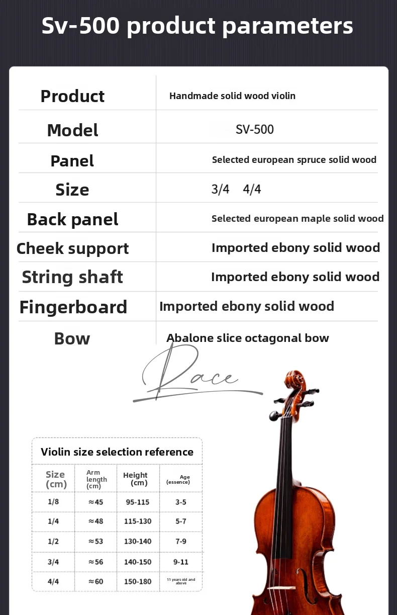 - Violin size: 4/4