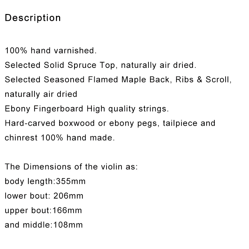 - Tailpiece Material: Dark Wood