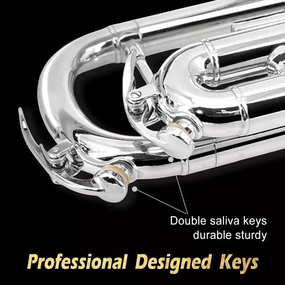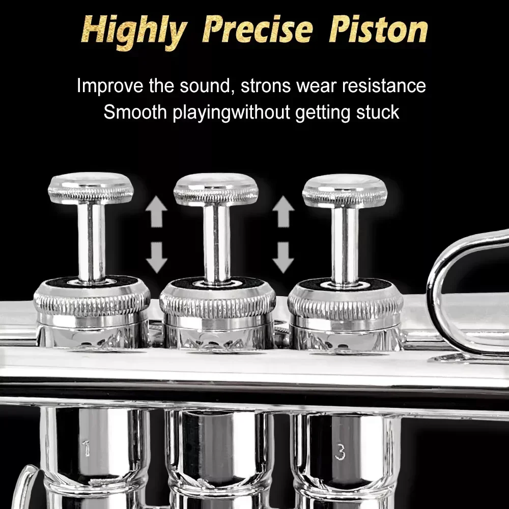 The sound and timbre of Bb trumpet are pure and bright, abundant and powerful, with excellent vibration. Also a user-friendly brass instrument for beginners and students.
